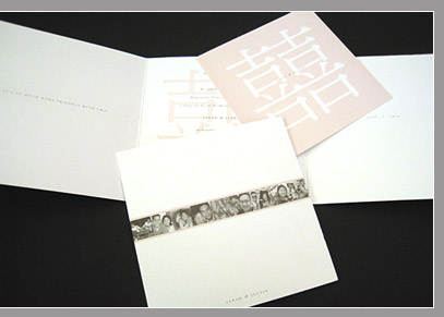 and in continuation, the recipient Pink is chosen as the subtle, yet dominant color on the invitation. Together with the happy moments shared in the photographs, a dreamy fairy-tale feel is created, matching |